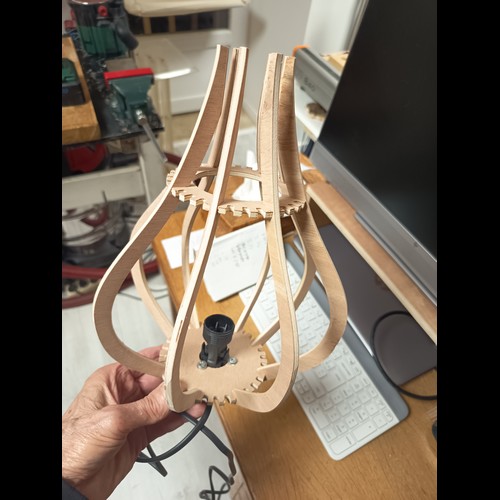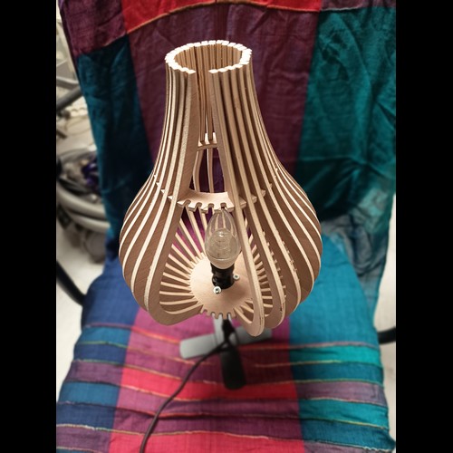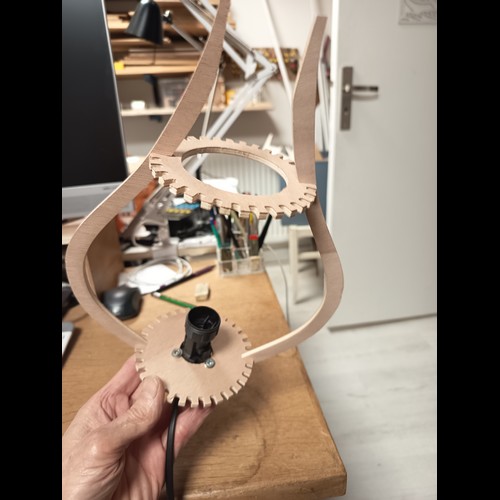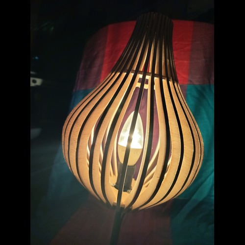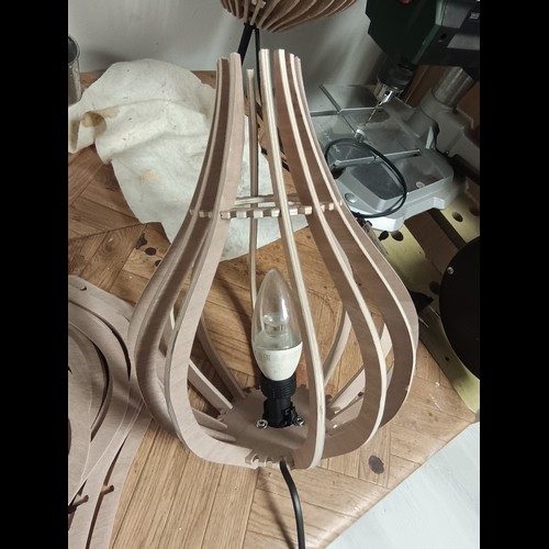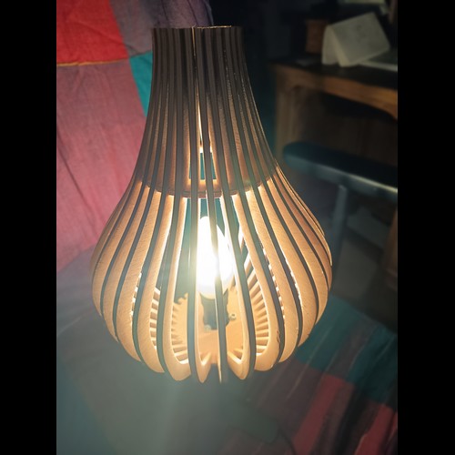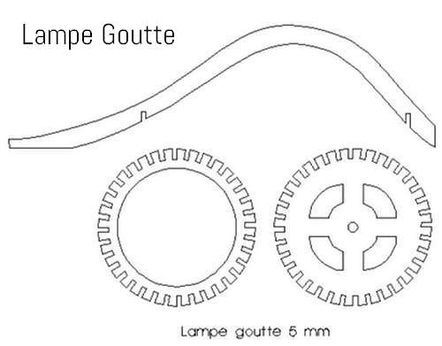 Kit à monter par simple pression au moyen des encoches. Une lampe originale livrée à plat, qui prend son volume une fois montée, par un ingénieux système d'encoches. Avec un petit supplément (6€), vous pouvez recevoir en plus la monture avec douille à vis E27 ou E14, pour installer votre lampe au plafond, ou la poser sur une table. A préciser dans le choix des options.