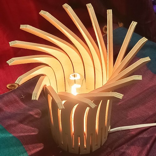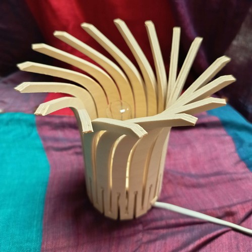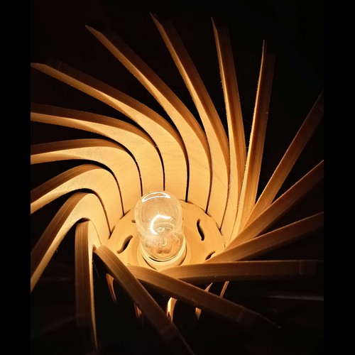 Une lampe design originale livrée à plat, et qui prend son volume une fois montée, par un ingénieux système d'encoches. Les éléments de la lampe ne sont pas individuels, mais tous connectés entre eux par la base, de sorte qu'ils peuvent s'enrouler facilement autour des 2 roues dentées fournies. Avec un petit supplément, vous pouvez recevoir en plus la monture avec douille à vis E27 ou E14, pour installer votre lampe au plafond, ou la poser sur votre table de chevet (à préciser à la commande dans les options).