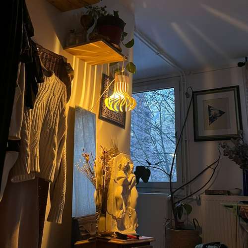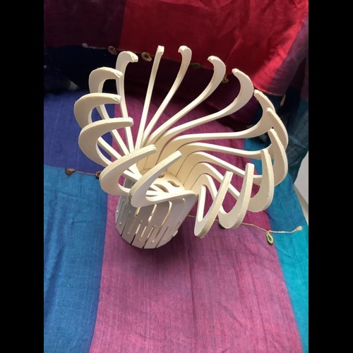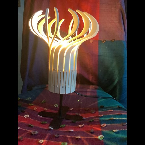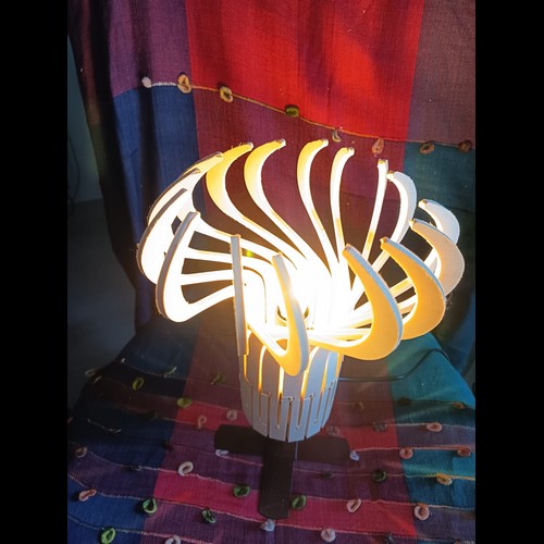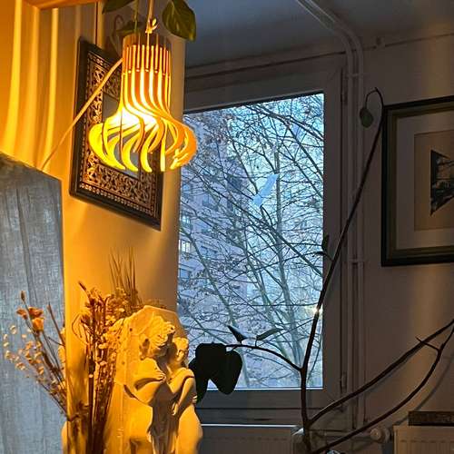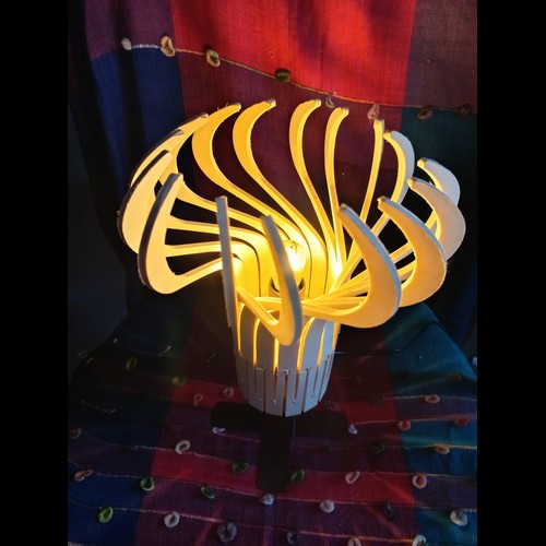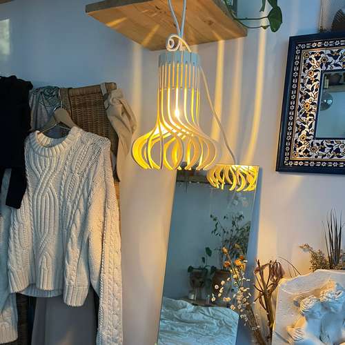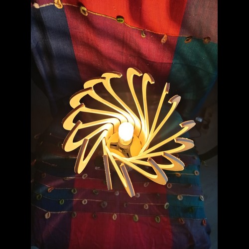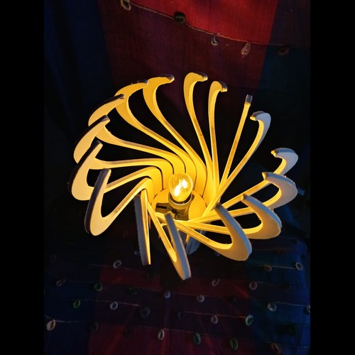 Une lampe design originale livrée à plat, et qui prend son volume une fois montée, par un ingénieux système d'encoches. Les éléments de la lampe ne sont pas individuels, mais tous connectés entre eux par la base, de sorte qu'ils peuvent s'enrouler facilement autour des 2 roues dentées fournies. Avec un petit supplément, vous pouvez recevoir en plus la monture avec douille à vis E27 ou E14, pour installer votre lampe au plafond, ou la poser sur votre table (à préciser à la commande dans les options).