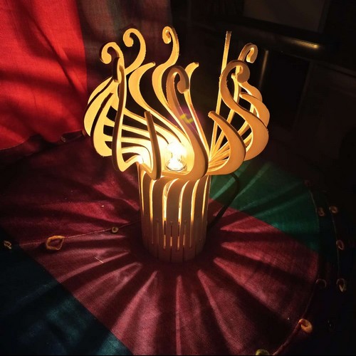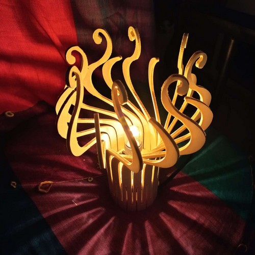 Les pièces découpées en bois brut ou verni. Une notice d'assemblage détaillée. Selon vos choix: Une monture électrique pour petite douille (E14) ou grande douille (E27), une adaptation de la lampe pour une pose à plat ou au plafond.