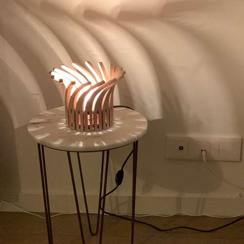 Contrairement aux autres lampes design, celle-ci est en bois de chêne plus épais, qui ne permet pas la même souplesse que les bois plus minces. Les pièces sont donc séparées et se montent individuellement autour des roues dentées. Avec un petit supplément, vous pouvez recevoir en plus la monture avec douille à vis E27 ou E14, pour installer votre lampe au plafond, ou la poser sur votre table (à préciser à la commande dans les options).